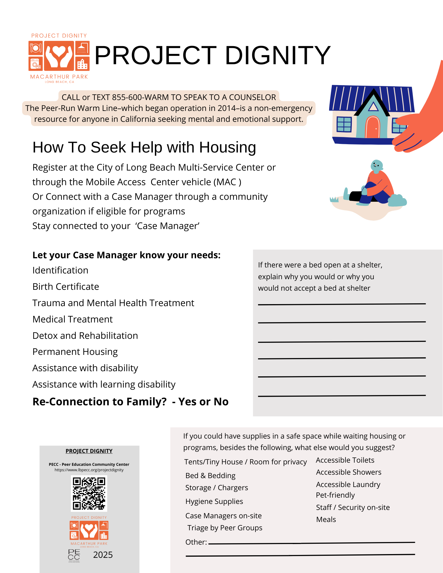 On February 14, 2022, Project Dignity began as a small, community-led outreach focused on building connection between housed and unhoused neighbors through shared food and conversation in Central Long Beach’s MacArthur Park. The park was a hub of connection and advocacy from 2022-2025.